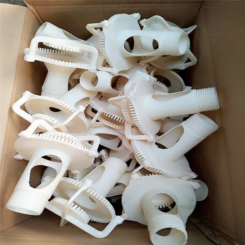 Typically made from corrosion-resistant materials such as PVC, ABS, or stainless steel to withstand water treatment chemicals.