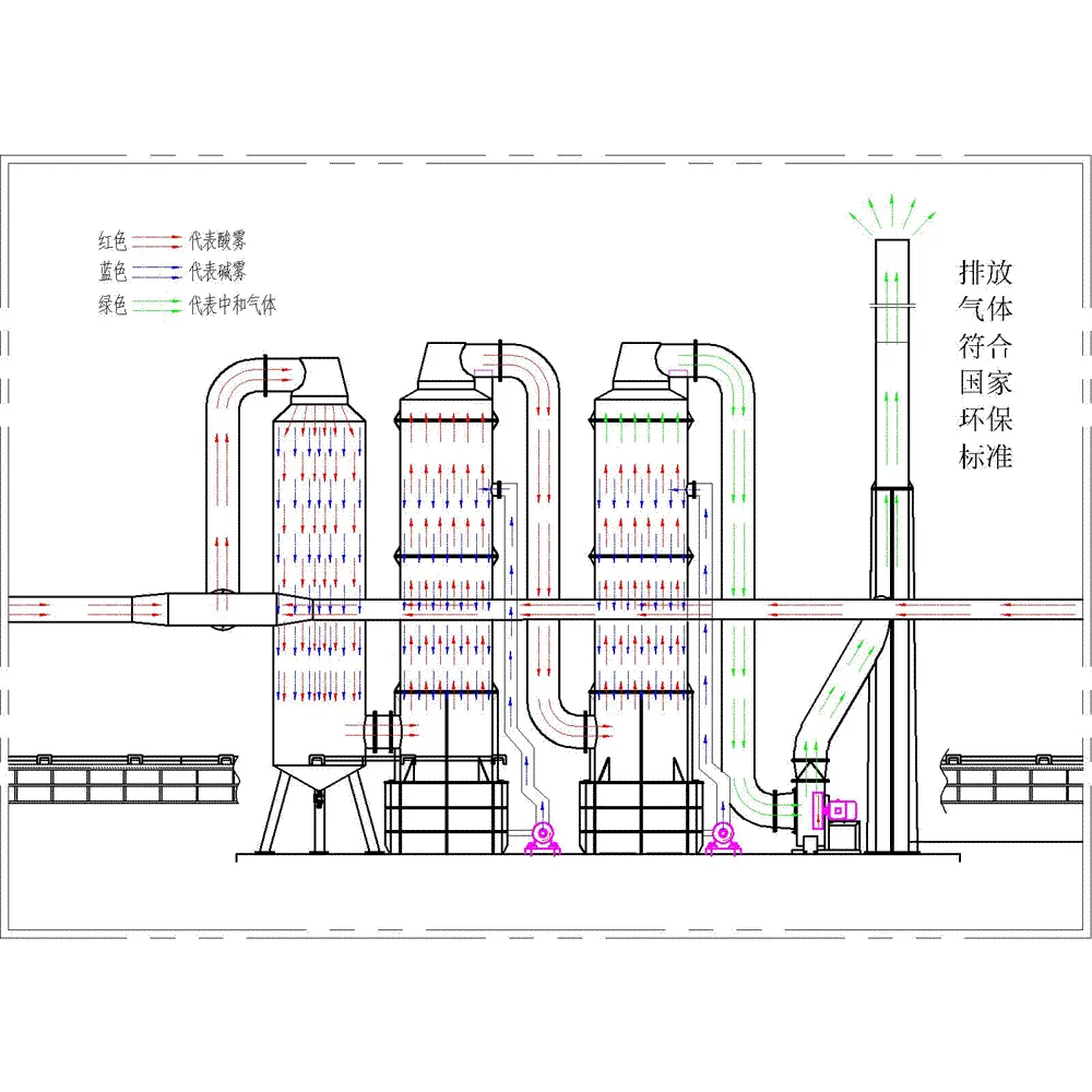Acid Gas Scrubber, Chemical Fume Purifier, VOC Removal Tower, Packed Bed Scrubber, Wet Scrubber System, Alkaline Waste Gas Treatment, Acid Mist Collector, Odor Control Tower, Industrial Air Pollution Control, Multi-Stage Scrubber, PP Plastic Scrubber, FRP Exhaust Tower
