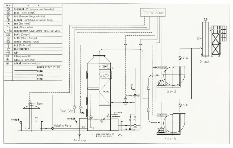 Acid Gas Control: Dual-stage (alkaline + carbon adsorption)