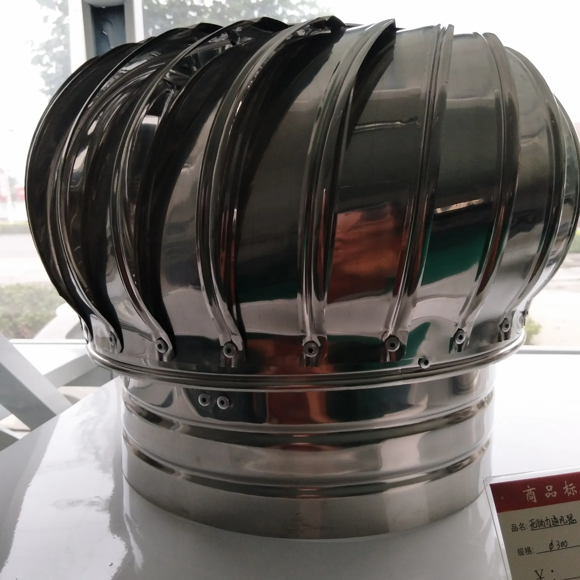 It operates automatically using natural wind power and indoor-outdoor temperature difference (thermal buoyancy), rotating continuously to achieve ventilation and heat dissipation.