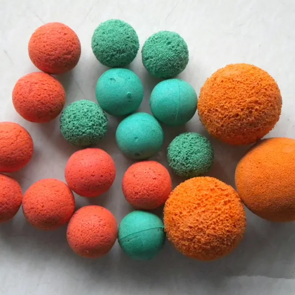 Driven by high-pressure water/gas (0.5-10MPa), the ball’s elastic material (e.g., polyurethane or silicone) scrapes off scale and deposits via friction.